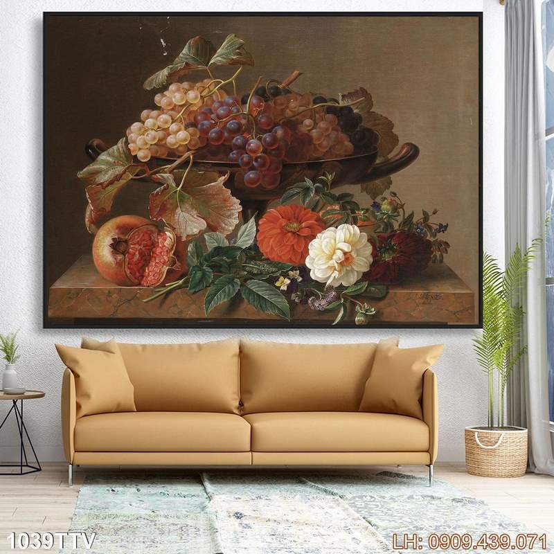 Ảnh tĩnh vật bình hoa dán tường – 1039TTV là một tác phẩm nổi bật thuộc danh mục Tranh sơn dầu tĩnh vật hoa quả và thuộc nhóm Tranh decor hiện đại. Theo đó, tác phẩm không chỉ trình bày hình ảnh tranh phong cách sơn dầu, tĩnh vật hoa quả mà còn gợi đến nhiều cung bậc về ý nghĩa của nó. Sự hòa quyện giữa hình ảnh độc đáo lẫn tổng quan tạo nên vẻ đẹp riêng biệt cho bức tranh, rất phù hợp nếu bạn đang tìm mẫu decor về chủ đề tĩnh vật bình hoa.