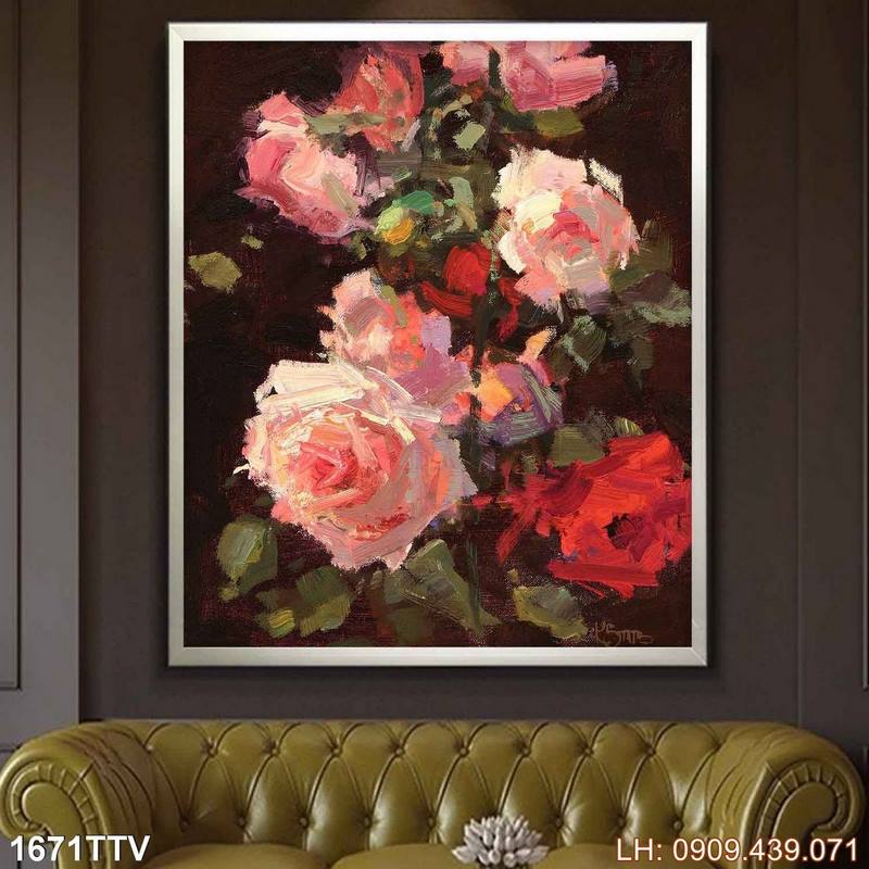 Ảnh tĩnh vật bình hoa dán tường – 1671TTV là một tác phẩm được yêu thích thuộc chủ đề Tranh sơn dầu tĩnh vật hoa quả và thuộc nhóm Tranh phòng ngủ giá rẻ. Theo đó, bức tranh không chỉ trình bày hình ảnh tranh phong cách sơn dầu, tĩnh vật hoa quả mà còn gợi đến các cung bậc về chiều sâu của nó. Sự hòa quyện giữa hình ảnh độc lập lẫn tổng quan tạo nên nét đẹp đặc trưng cho bức tranh, rất phù hợp nếu bạn đang tìm mẫu decor về chủ đề tĩnh vật bình hoa.