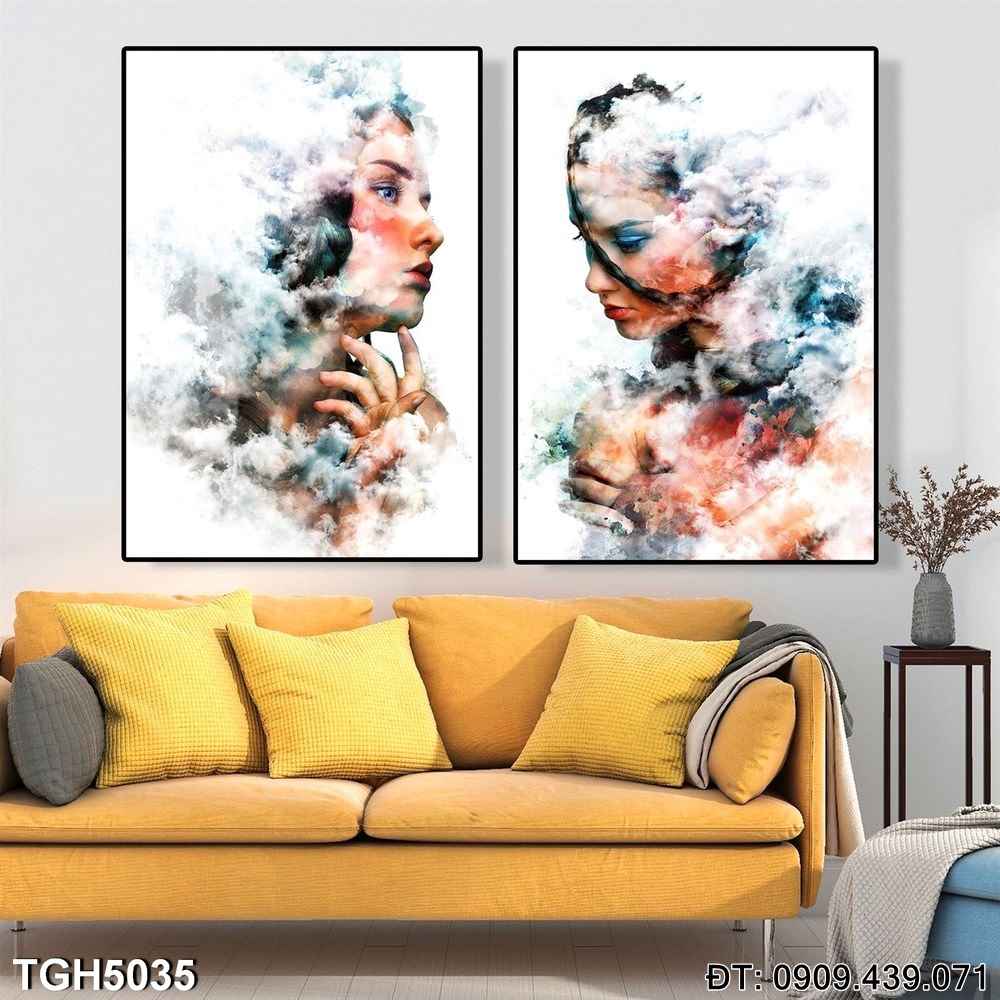Bộ 2 Tranh Cô Gái Và Mây Mù Sương Khói TGH5035 khắc họa hình ảnh bí ẩn và quyến rũ của người phụ nữ trong sương khói mờ ảo. Bức tranh sẽ là điểm nhấn độc đáo cho phòng khách hoặc phòng ngủ, mang đến không khí thơ mộng và lãng mạn.