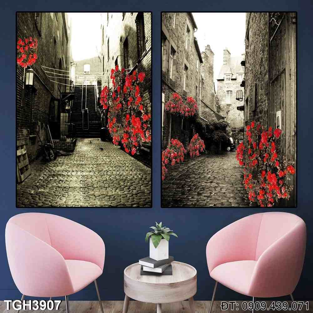 Bộ 2 tranh Thành phố cổ – Mã: TGH3907 khắc họa vẻ đẹp cổ kính của những con phố xưa với các công trình kiến trúc độc đáo. Bức tranh mang đến không gian bình yên, rất phù hợp để trang trí phòng khách hoặc không gian làm việc, tạo cảm giác gần gũi và lãng mạn.