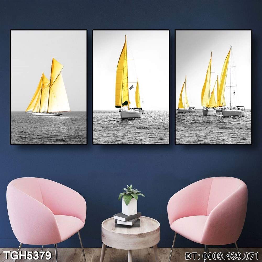 Bộ 3 tranh ấn tượng Thuyền buồm ra khơi TGH5379 tái hiện khung cảnh biển cả bao la với những chiếc thuyền buồm đang ra khơi. Sự kết hợp giữa các bức tranh tạo nên một không gian hài hòa và sinh động, rất thích hợp để trang trí cho các không gian như phòng khách hoặc văn phòng làm việc.