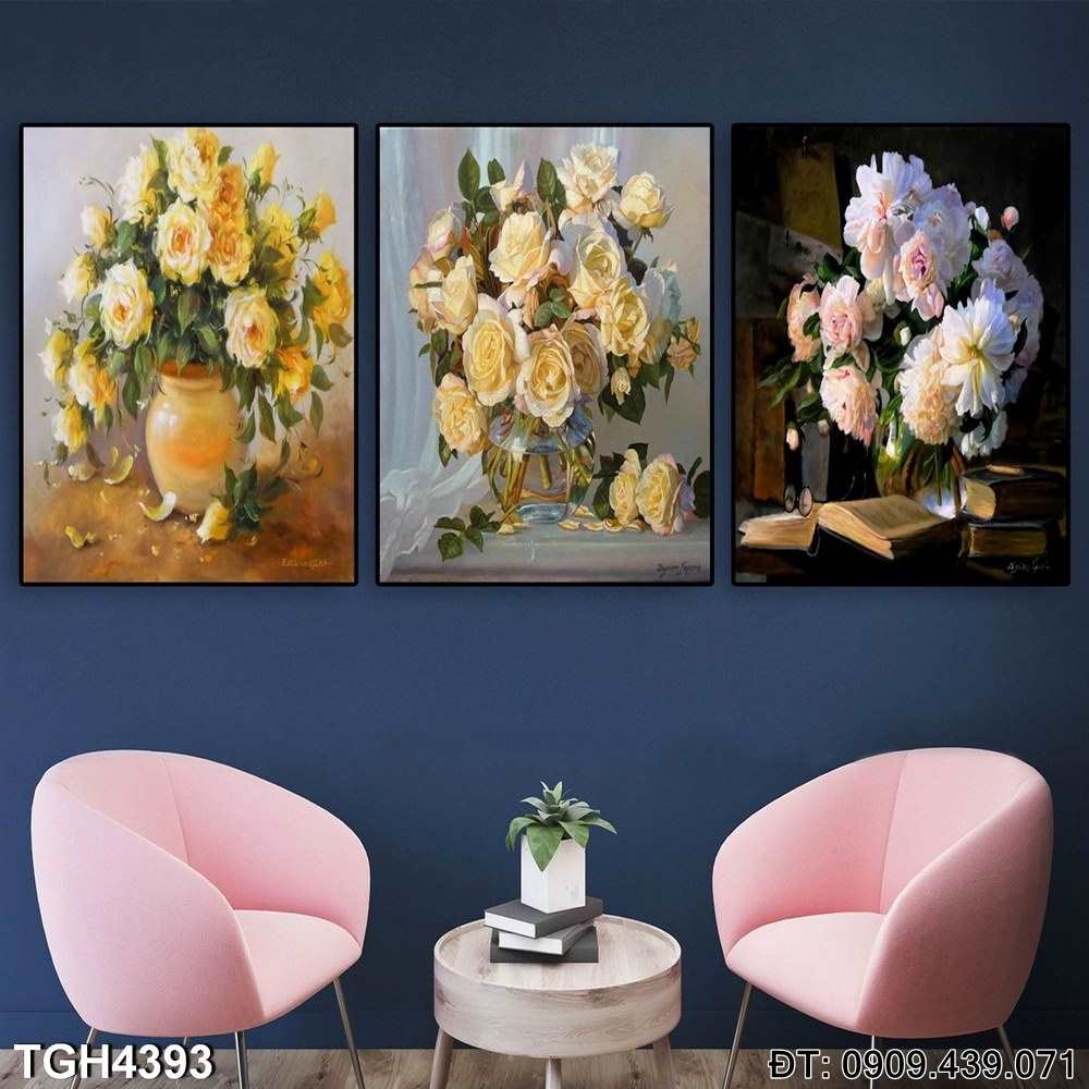 Bộ 3 Tranh Bình Hoa Trang Trí Phòng TGH4393 sẽ là điểm nhấn nghệ thuật độc đáo cho ngôi nhà của bạn, mang lại cảm giác ấm áp và thân thiện. Đây cũng là món quà tuyệt vời dành cho những người yêu thích hoa và nghệ thuật trang trí.
