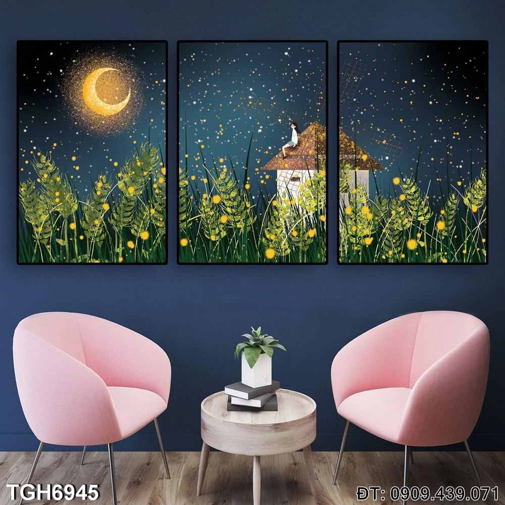 Bộ 3 Tranh Cảnh Đẹp Về Đêm TGH6945 mang đến vẻ đẹp của cảnh đêm lung linh với bộ ba bức tranh nổi bật, rất thích hợp để trang trí phòng bé hoặc không gian cần thêm sự huyền bí và ấn tượng. Bộ tranh này tạo ra một không gian sống sống động và đầy màu sắc.