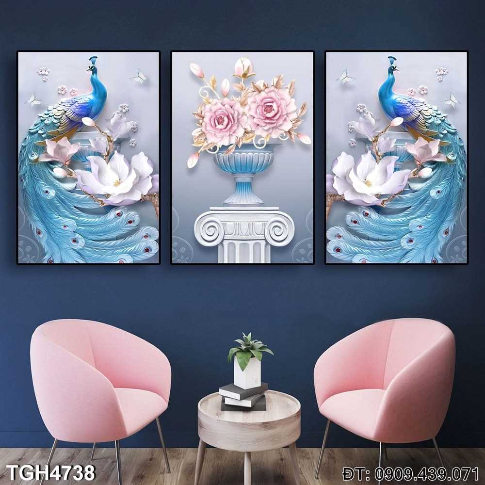 Chúng tôi đảm bảo giao hàng nhanh chóng và cung cấp dịch vụ đổi trả nếu có lỗi từ nhà sản xuất. Bộ 3 tranh Công đẹp lộng lẫy TGH4738 sẽ mang đến cho không gian nhà bạn vẻ đẹp kiêu sa, thích hợp làm quà tặng sang trọng cho người thân yêu.