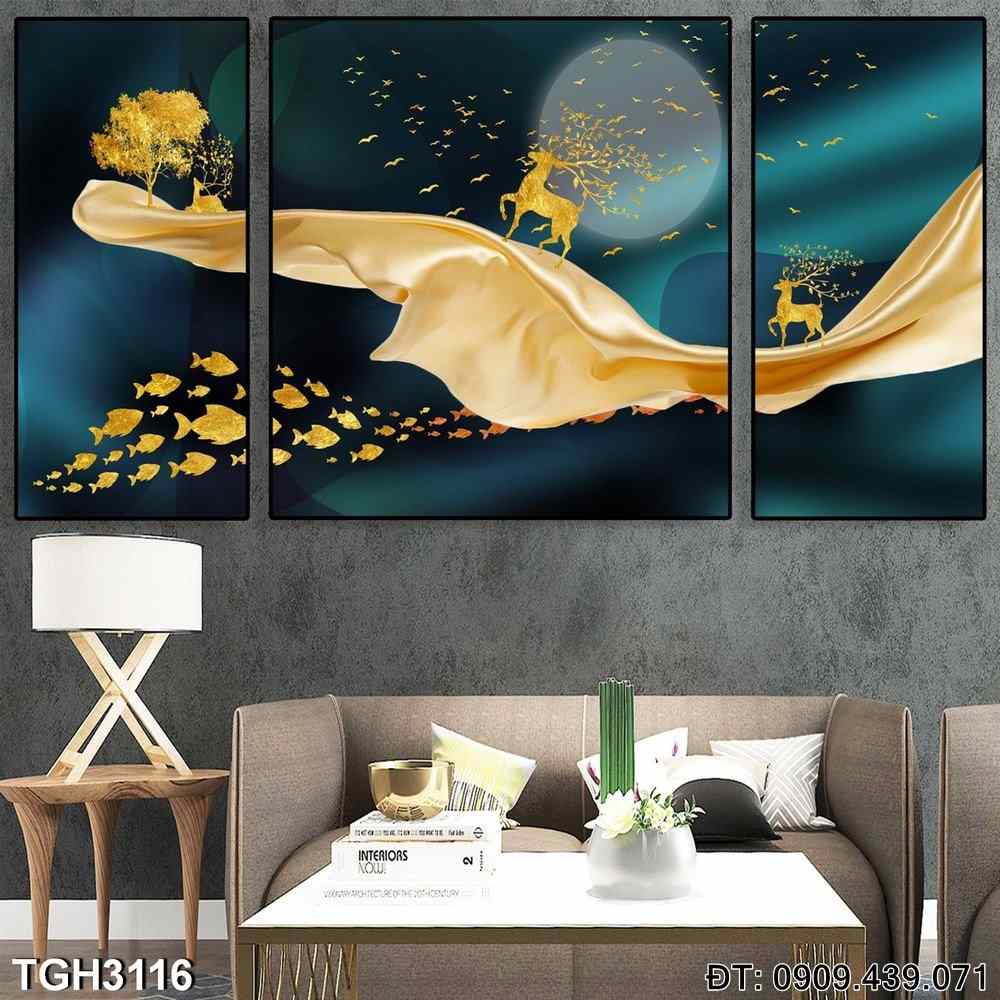 Bộ 3 tranh hiện đại hươu – Mã:TGH3116