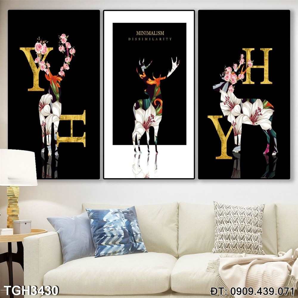 Bộ 3 tranh hươu nai hiện đại đẹp – Mã:TGH3430