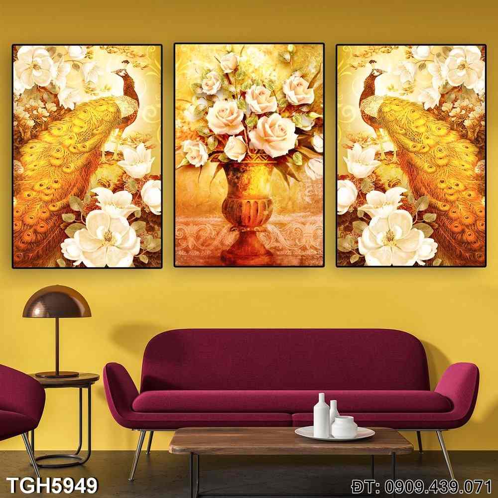 Giao hàng nhanh chóng và có dịch vụ đổi trả khi cần thiết. Bộ 3 tranh Kim Tiền Chim Công TGH5949 sẽ là điểm nhấn phong thủy hoàn hảo cho ngôi nhà, mang lại sự thịnh vượng và phú quý cho gia đình bạn.