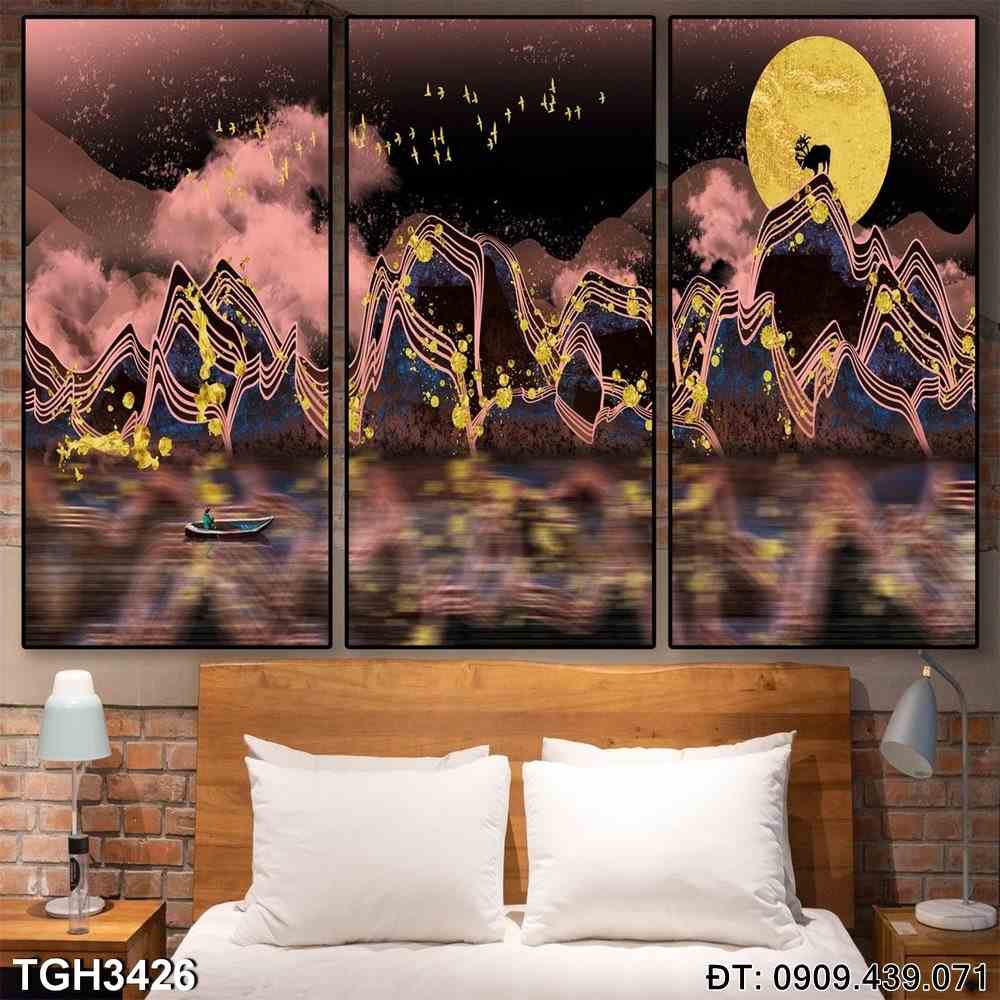 Bộ 3 tranh núi hồng – Mã:TGH3426