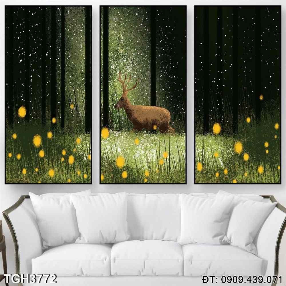 Bộ 3 tranh phòng ngủ Hươu thân thiện – Mã:TGH3772