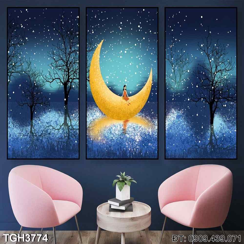 Bộ 3 tranh phòng ngủ Mặt Trăng buông xuống – Mã:TGH3774