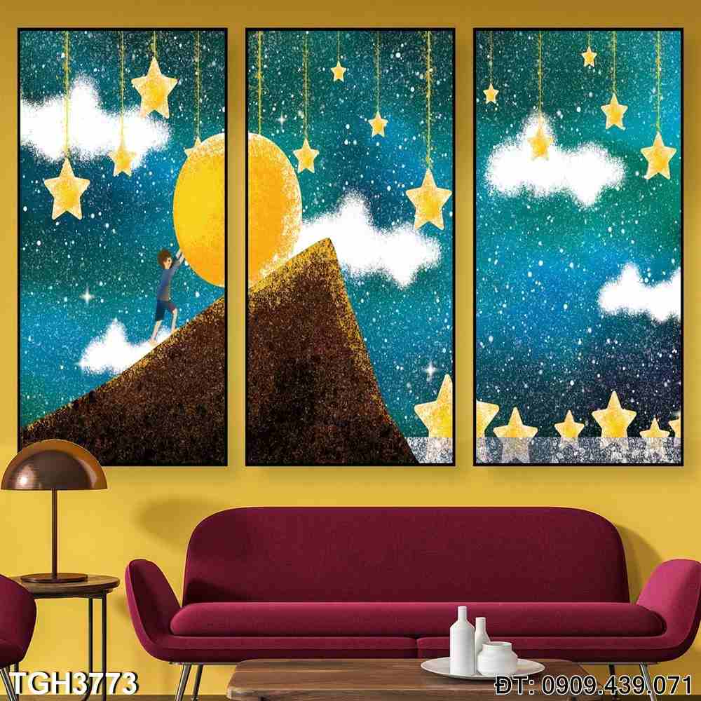 Bộ 3 tranh phòng ngủ Núi cao ngắm màn đêm – Mã:TGH3773