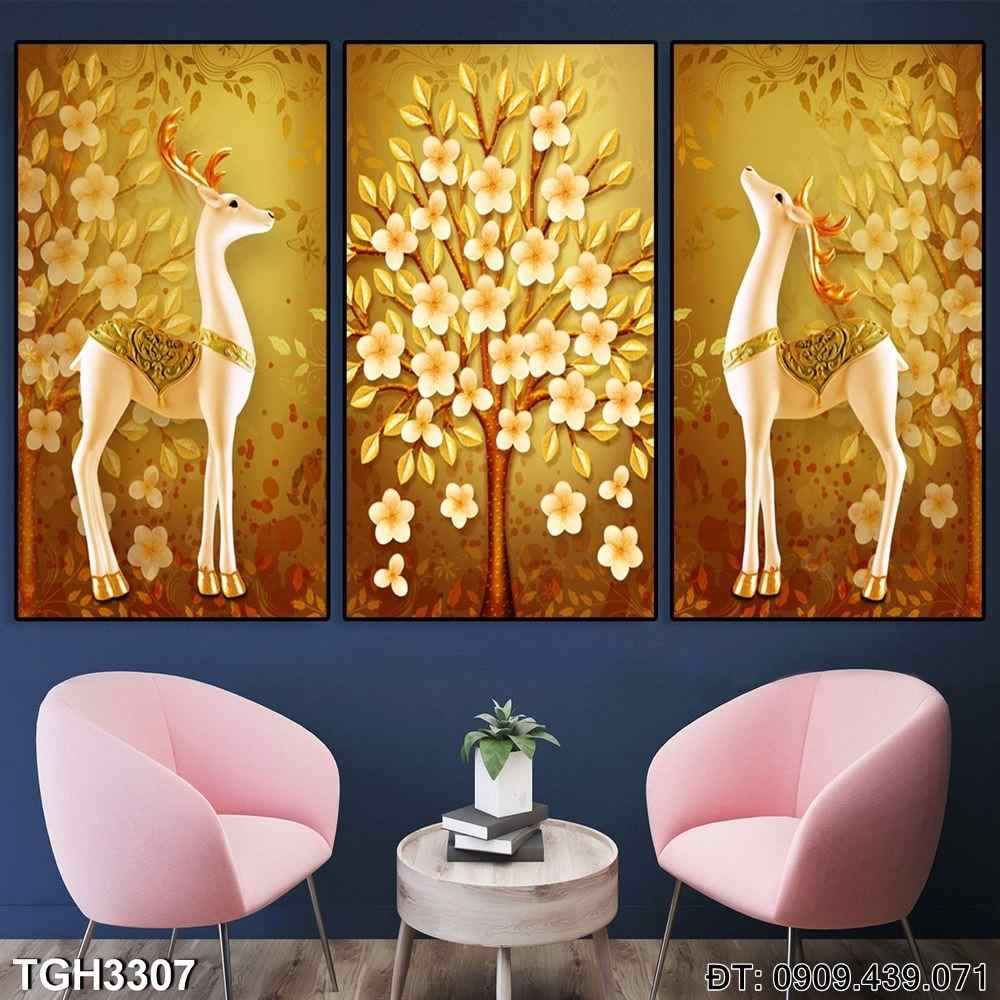 Bộ 3 tranh phòng ngủ phòng khách hươu nai cây – Mã:TGH3307