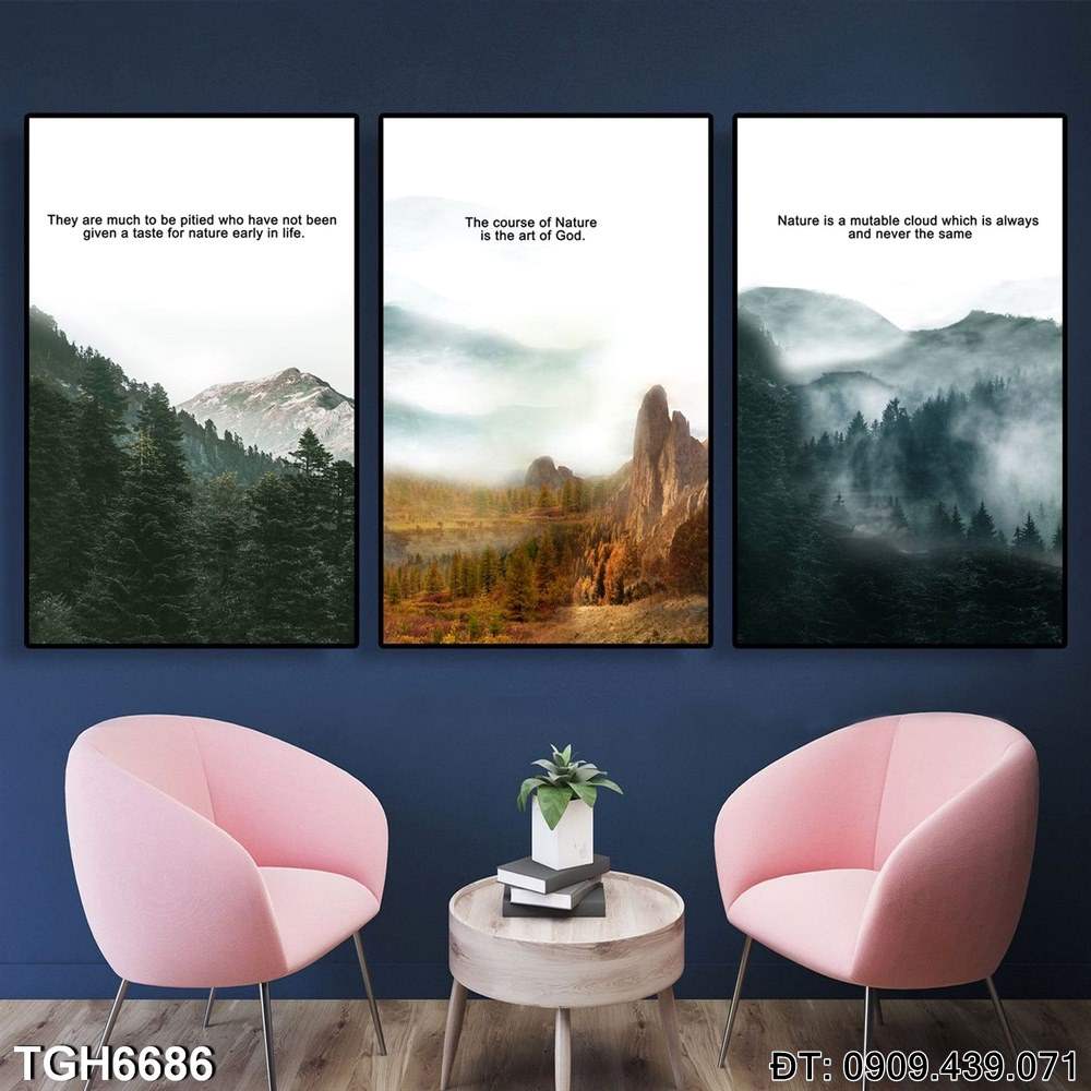 Chúng tôi cung cấp dịch vụ giao hàng toàn quốc và bảo hành 1 đổi 1, đảm bảo sự hài lòng tối đa khi bạn chọn mua sản phẩm này. Để Bộ 3 tranh Rừng Núi Đẹp TGH6686 làm điểm nhấn tuyệt vời cho không gian sống của bạn.