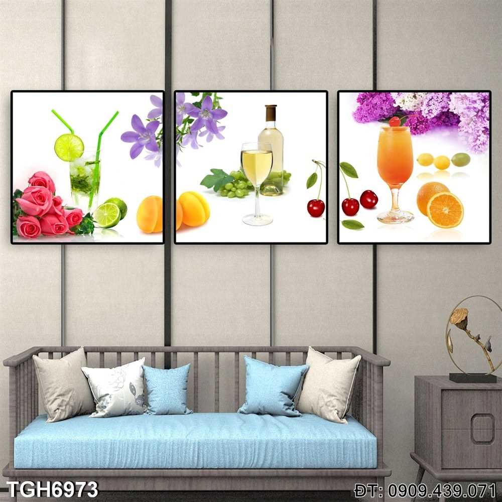 Bộ 3 tranh Rượu Trái Cây TGH6973 là lựa chọn tuyệt vời để trang trí phòng ăn với hình ảnh hấp dẫn của rượu và trái cây. Bộ tranh này không chỉ làm mới không gian mà còn mang đến một cảm giác sang trọng và đầy sức sống cho khu vực ăn uống của bạn.