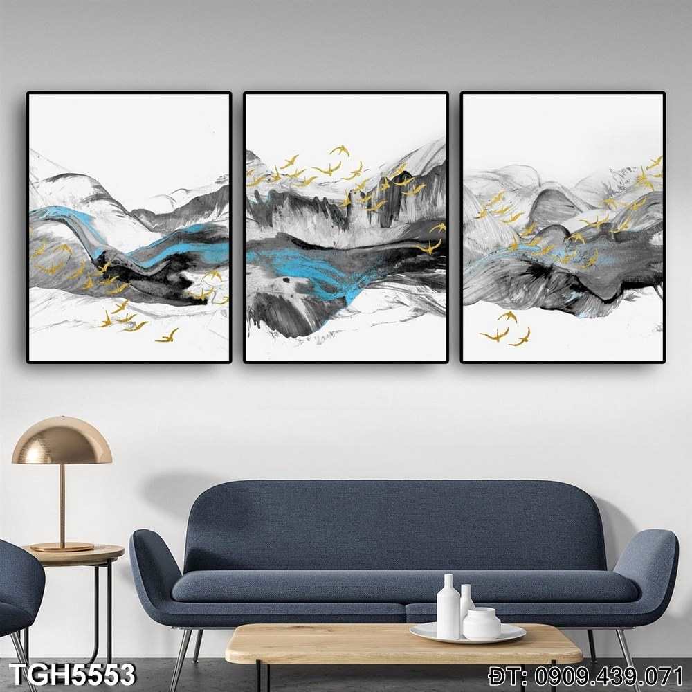 Bộ 3 tranh Sự Hài Hoà Của Chim Trong Đỉnh Núi TGH5553 khắc họa vẻ đẹp hòa quyện giữa hình ảnh chim bay lượn và những đỉnh núi hùng vĩ. Với phong cách trừu tượng, bức tranh tạo nên một không gian thư giãn, rất thích hợp để trang trí phòng khách hoặc phòng ngủ, mang lại cảm giác bình yên và gần gũi với thiên nhiên.