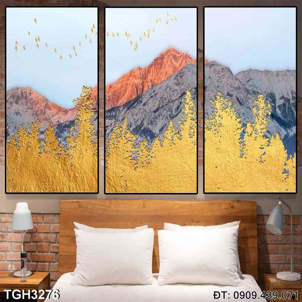 Bộ 3 tranh trang trí núi non cây lá – Mã:TGH3276
