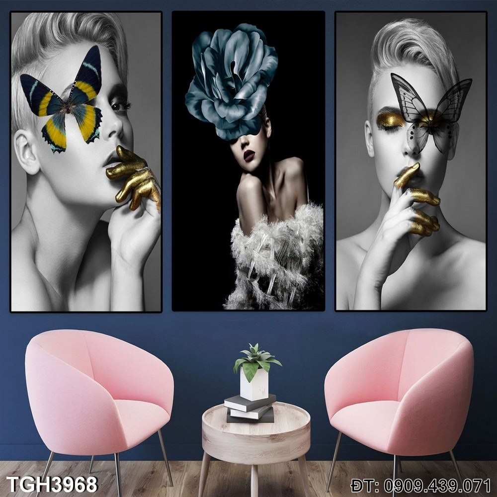 Bộ 3 tranh về Cô gái cùng với con bướm vàng – Mã:TGH3968