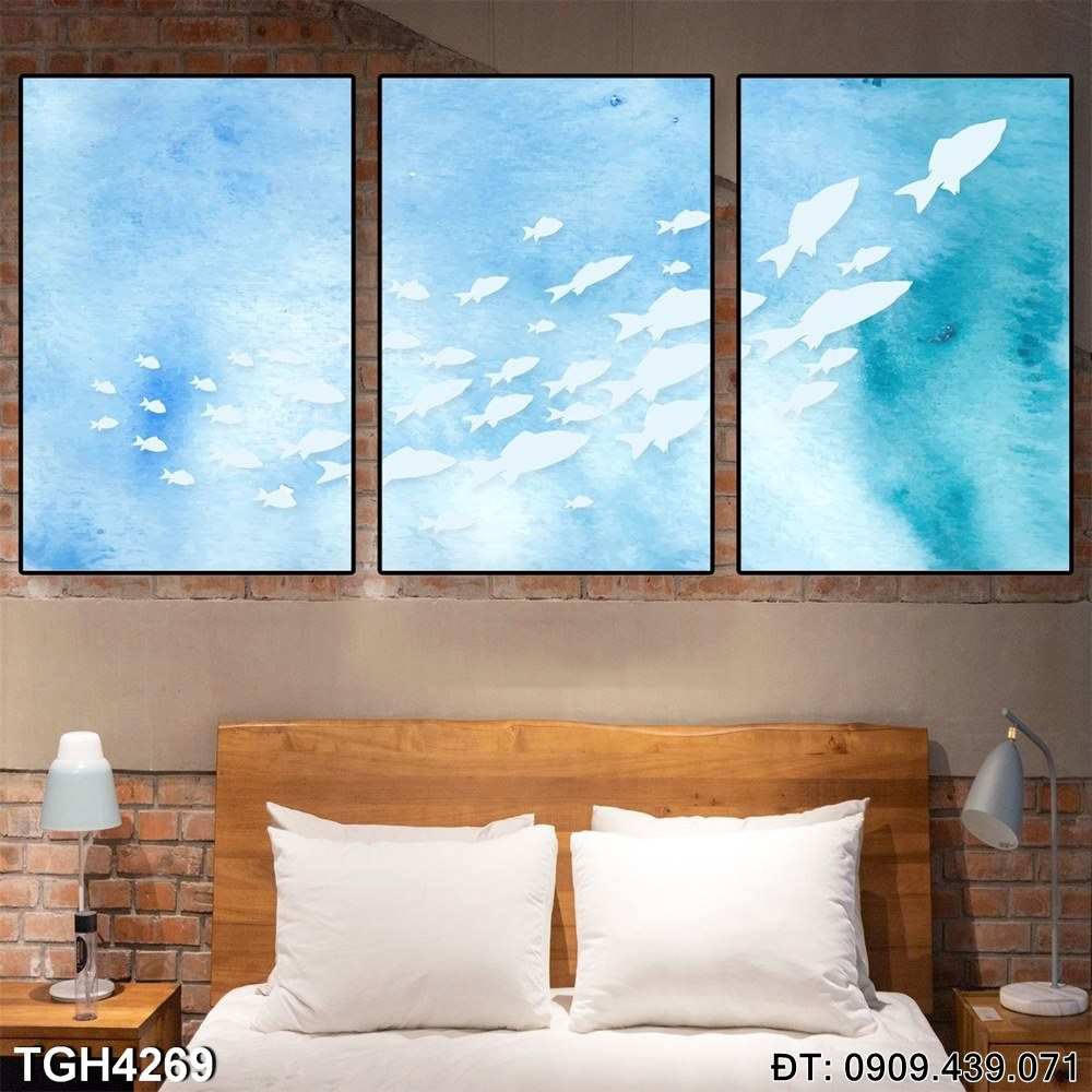 Bộ 3 tranh về Đàn cá đại dương TGH4269 khắc họa hình ảnh sống động của những đàn cá đang bơi trong đại dương, tạo không gian gần gũi với thiên nhiên. Bộ tranh này rất thích hợp để trang trí cho phòng khách hoặc không gian nghỉ ngơi.