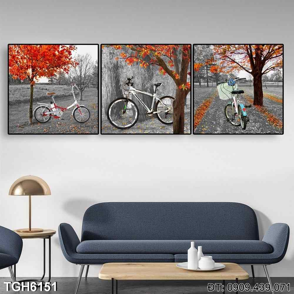 Bộ 3 tranh Xe Đạp Mùa Thu TGH6151 mang đến hình ảnh một chiếc xe đạp lướt qua những con đường mùa thu rực rỡ. Bộ tranh này không chỉ làm đẹp cho không gian phòng khách hay phòng ngủ mà còn tạo ra một cảm giác ấm áp và lãng mạn.