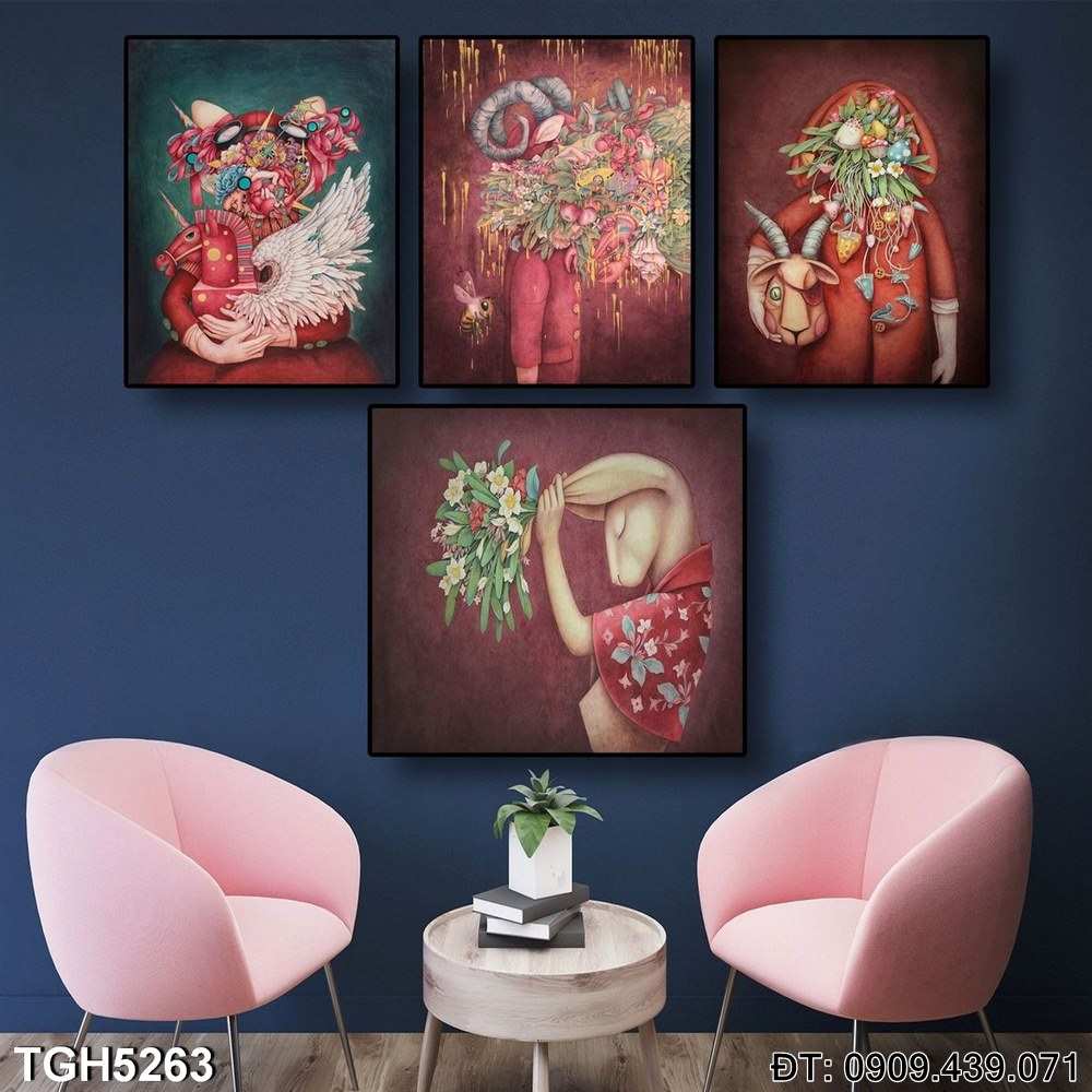 Bộ 4 tranh ấn tượng Các vòng hoa và màu hồng TGH5263 khắc họa vẻ đẹp tinh tế của những vòng hoa với tông màu hồng nhẹ nhàng. Bức tranh sử dụng phong cách nghệ thuật ấn tượng, rất thích hợp để trang trí phòng ngủ, tạo nên không gian lãng mạn và đầy sức sống.