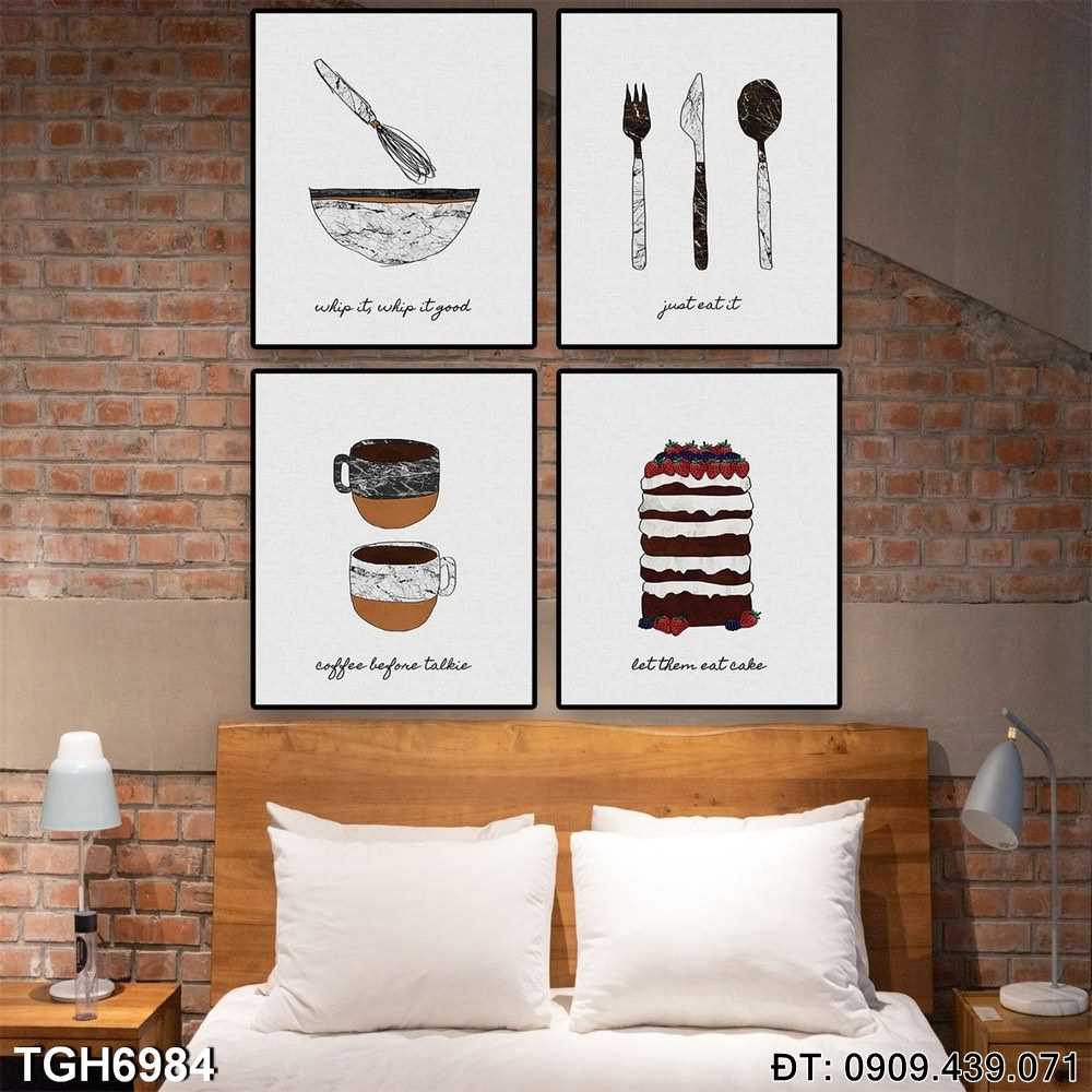 Bộ 4 Tranh Dụng Cụ Bếp TGH6984 mang đến vẻ đẹp tinh tế với hình ảnh các dụng cụ bếp thường dùng. Bộ tranh này là sự lựa chọn hoàn hảo để trang trí quán trà sữa, tạo nên một không gian ấm cúng và hấp dẫn cho khách hàng.
