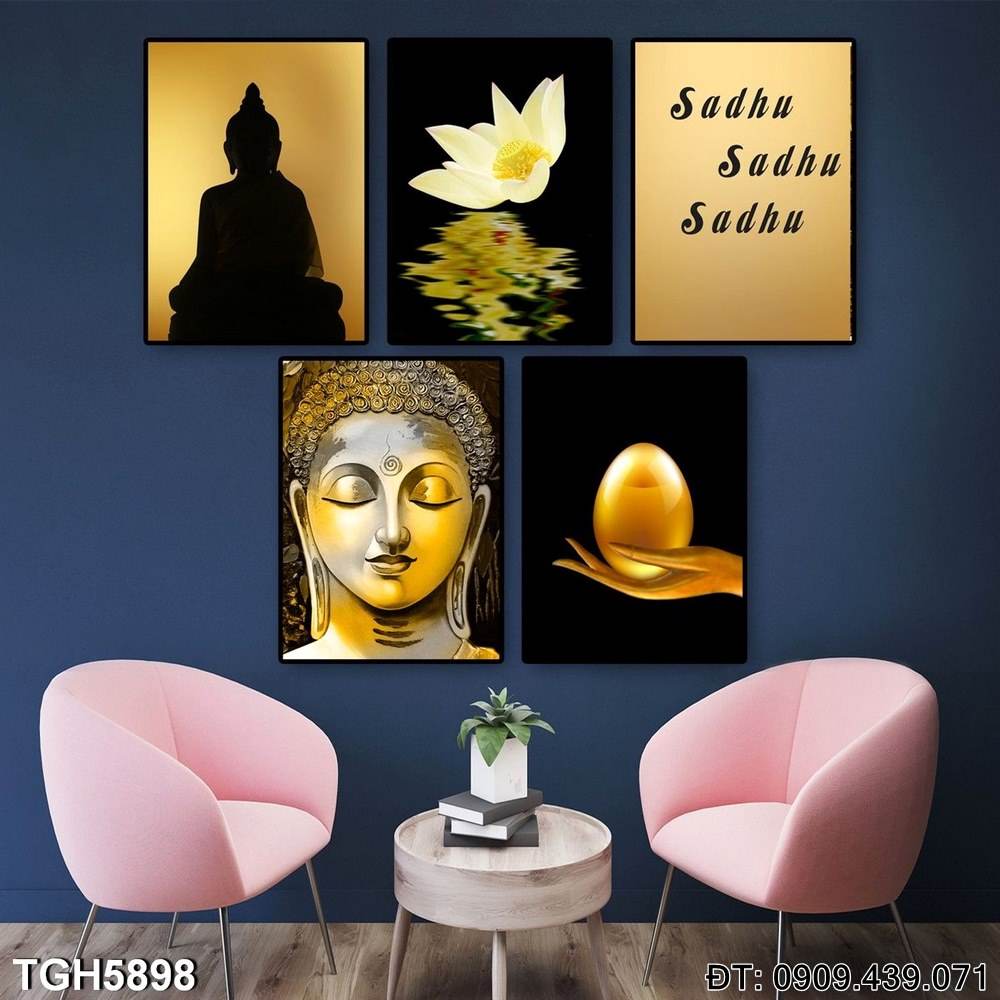 Bộ 5 tranh Phật Thiền Tịnh TGH5898 thể hiện vẻ đẹp tĩnh lặng và bình yên của hình ảnh Phật trong những khoảnh khắc thiền định. Bức tranh mang đến không gian thanh tịnh, rất thích hợp để trang trí phòng ngủ, tạo cảm giác an yên và sâu lắng.