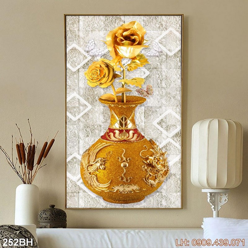 Bức tranh bình hoa đẹp – 252BH là một sản phẩm tiêu biểu thuộc chủ đề Tranh bình hoa cổ và thuộc nhóm Tranh treo tường in nhanh. Điều đặc biệt, tác phẩm không chỉ thể hiện hình ảnh các loài hoa mà còn gợi đến các cảm xúc về chiều sâu của nó. Sự hòa quyện giữa hình ảnh chi tiết lẫn tổng quan tạo nên nét đẹp đặc trưng cho bức tranh, rất phù hợp để trang trí phòng ngủ