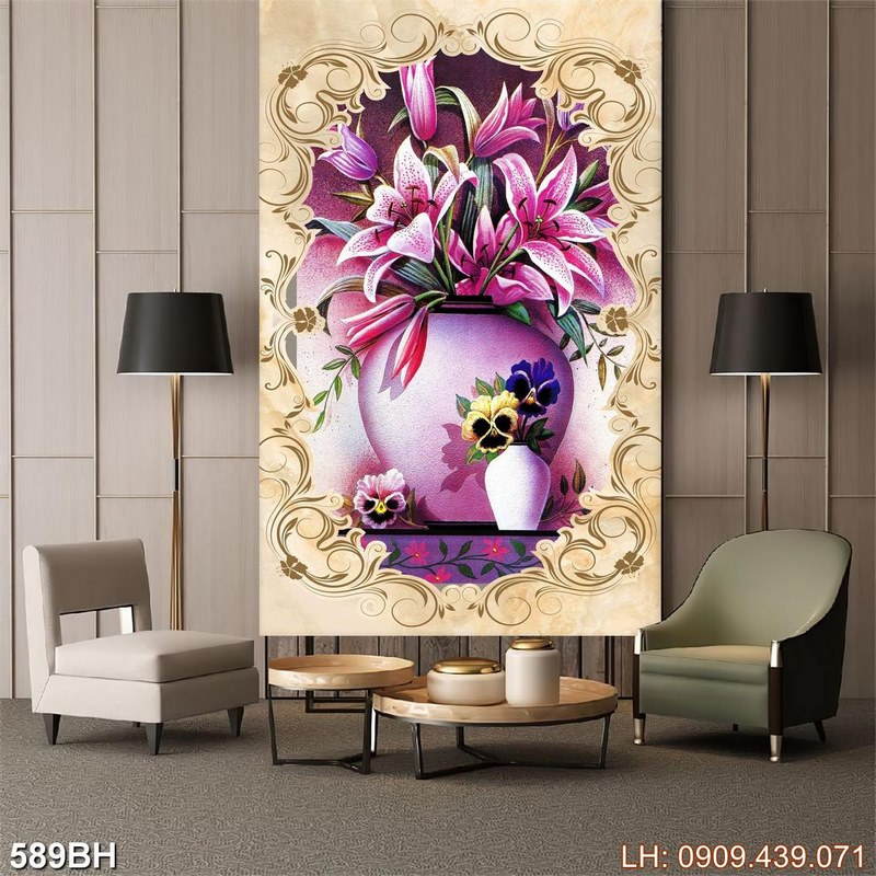 Bức tranh bình hoa đẹp – 589BH là một sản phẩm tiêu biểu thuộc chủ đề Tranh bình hoa cổ và thuộc nhóm Tranh decor hiện đại. Nhìn vào tranh, tác phẩm không chỉ trình bày hình ảnh các loài hoa mà còn gợi đến các cung bậc về chiều sâu của nó. Sự hòa quyện giữa ý tưởng chi tiết lẫn tổng quan tạo nên vẻ đẹp đặc trưng cho bức tranh, rất phù hợp để decor khu vực hành lang