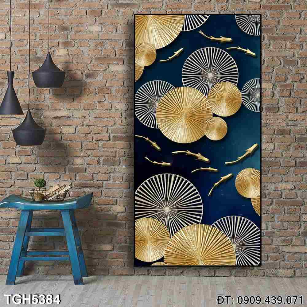 Cá Chép Vàng Tinh Khiết TGH5384 khắc họa hình ảnh đàn cá chép vàng tượng trưng cho sự giàu có và may mắn, rất phù hợp để trang trí trong phòng khách hoặc nơi làm việc, mang đến cảm giác thanh bình và tài lộc.
