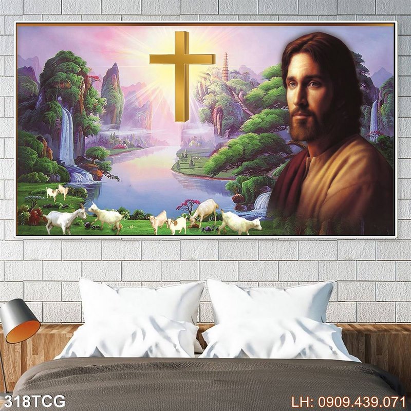 Mẫu tranh Thiên Chúa khổ lớn – 318TCG là một tác phẩm nổi bật thuộc chủ đề Tranh công giáo và thuộc nhóm Tranh trang trí theo yêu cầu. Nhìn vào tranh, bức tranh không chỉ trình bày hình ảnh công giáo mà còn mang đến các cung bậc về chiều sâu của nó. Sự hòa quyện giữa màu sắc độc lập lẫn tổng quan tạo nên vẻ đẹp riêng biệt cho bức tranh, rất phù hợp để decor không gian Thiên Chúa.