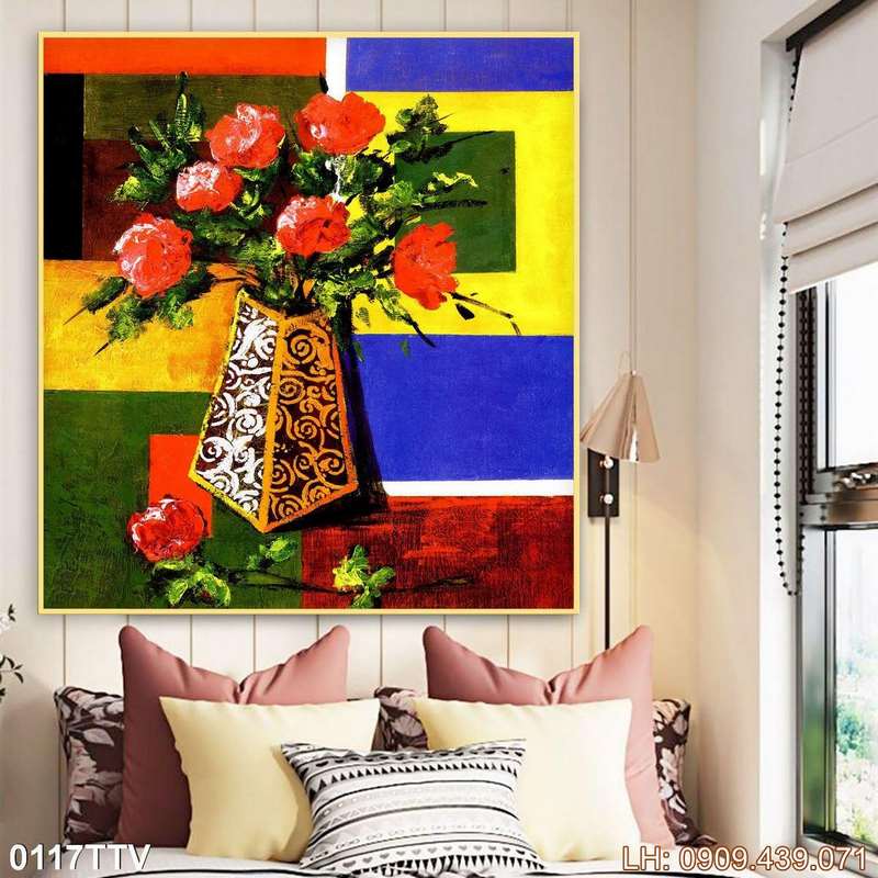 Mẫu tranh tĩnh vật bình hoa in laminate – 117TTV là một sản phẩm được yêu thích thuộc chủ đề Tranh sơn dầu tĩnh vật hoa quả và thuộc nhóm Tranh phòng ngủ giá rẻ. Điều đặc biệt, bức tranh không chỉ thể hiện hình ảnh tranh phong cách sơn dầu, tĩnh vật hoa quả mà còn gợi đến nhiều cảm xúc về chiều sâu của nó. Sự hòa quyện giữa ý tưởng độc đáo lẫn tổng quan tạo nên vẻ đẹp đặc trưng cho bức tranh, rất phù hợp nếu bạn đang tìm mẫu treo tường về chủ đề tĩnh vật bình hoa.