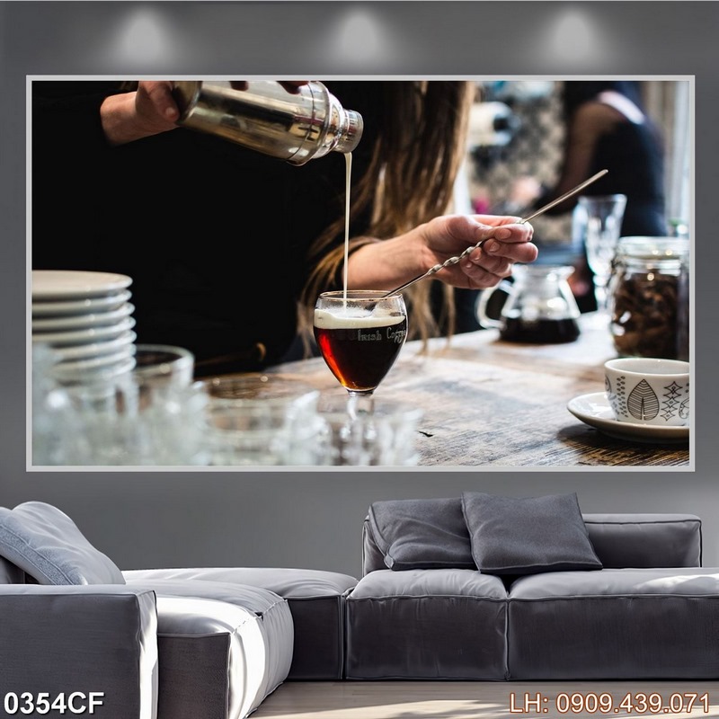 Tranh ảnh cafe in nhanh – 354CF là một tác phẩm được yêu thích thuộc danh mục Tranh cà phê và thuộc nhóm Tranh treo tường in nhanh. Điều đặc biệt, bức tranh không chỉ mô tả hình ảnh trang trí quán cà phê mà còn gợi đến các cảm xúc về chiều sâu của nó. Sự hòa quyện giữa ý tưởng độc đáo lẫn tổng quan tạo nên nét đẹp riêng biệt cho bức tranh, rất phù hợp để decor không gian cafe.