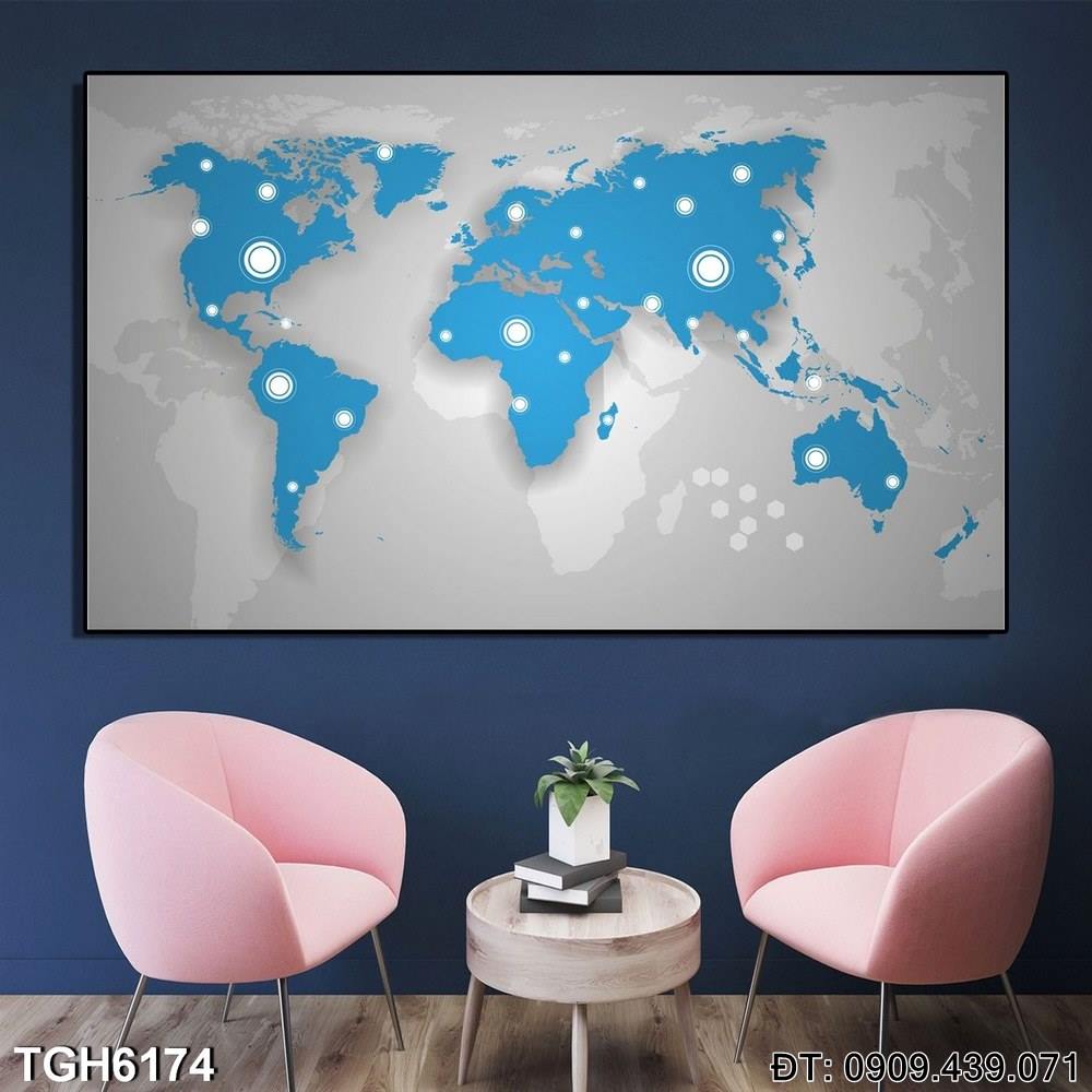 Tranh Bản Đồ Thế Giới TGH6174 là một tác phẩm nghệ thuật mang đến cái nhìn tổng quát về toàn cầu, với các quốc gia và khu vực được thể hiện rõ ràng. Bức tranh này tạo ra một không gian trang trí trang nhã và thông tin, giúp bạn dễ dàng theo dõi địa lý và các khu vực quan trọng.