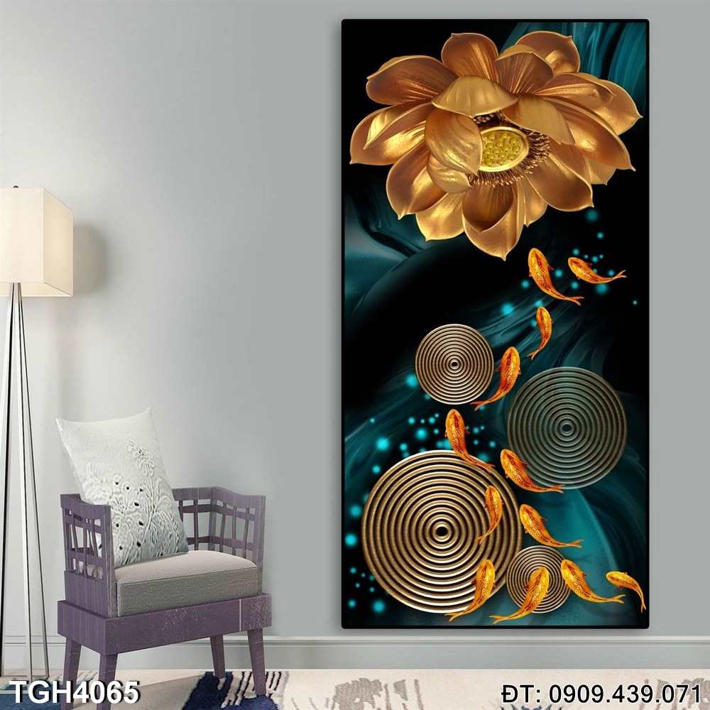 Tranh Đàn Cá Và Hoa Sen TGH4065 khắc họa hình ảnh đàn cá bơi lội bên những bông hoa sen nở rộ, tạo nên một bức tranh đầy màu sắc và sống động. Bức tranh này rất thích hợp để trang trí cho không gian nghệ thuật, mang lại cảm giác thư giãn và gần gũi với thiên nhiên.