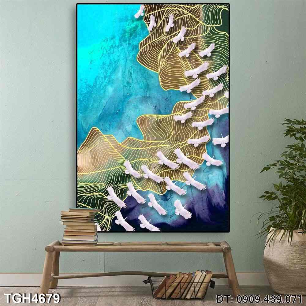 Tranh Đàn Chim Bay Qua Vùng Núi TGH4679 khắc họa hình ảnh những chú chim đang bay qua vùng núi, tạo ra cảm giác tự do và phóng khoáng. Bức tranh trừu tượng này rất phù hợp để trang trí cho không gian sống, mang lại sự sinh động và gần gũi với thiên nhiên.