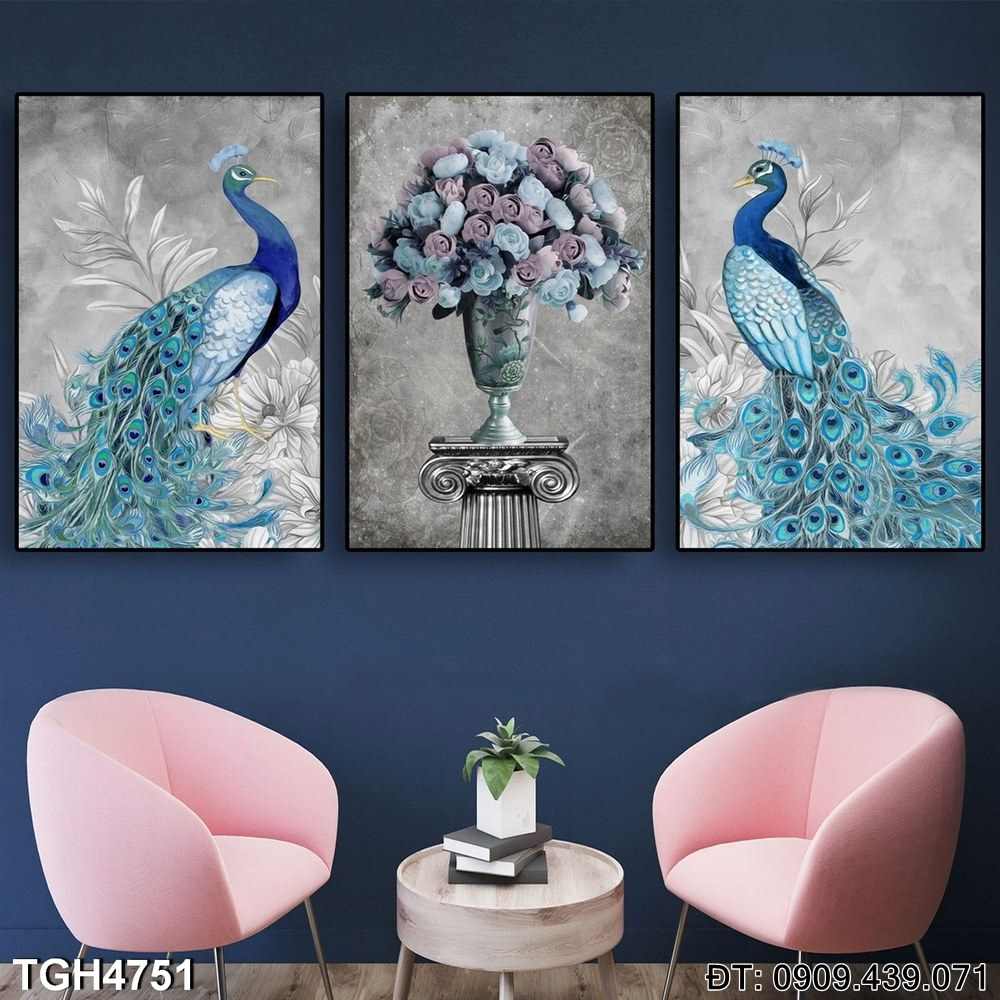 Chất lượng in ấn cao cấp giúp tái hiện sắc nét từng chi tiết, từ bộ lông công lộng lẫy đến không gian bao quanh, tạo nên một bộ tranh đầy sức hút và quý phái. Đây là lựa chọn tuyệt vời để làm mới không gian sống, tạo cảm giác thanh lịch và tinh tế.