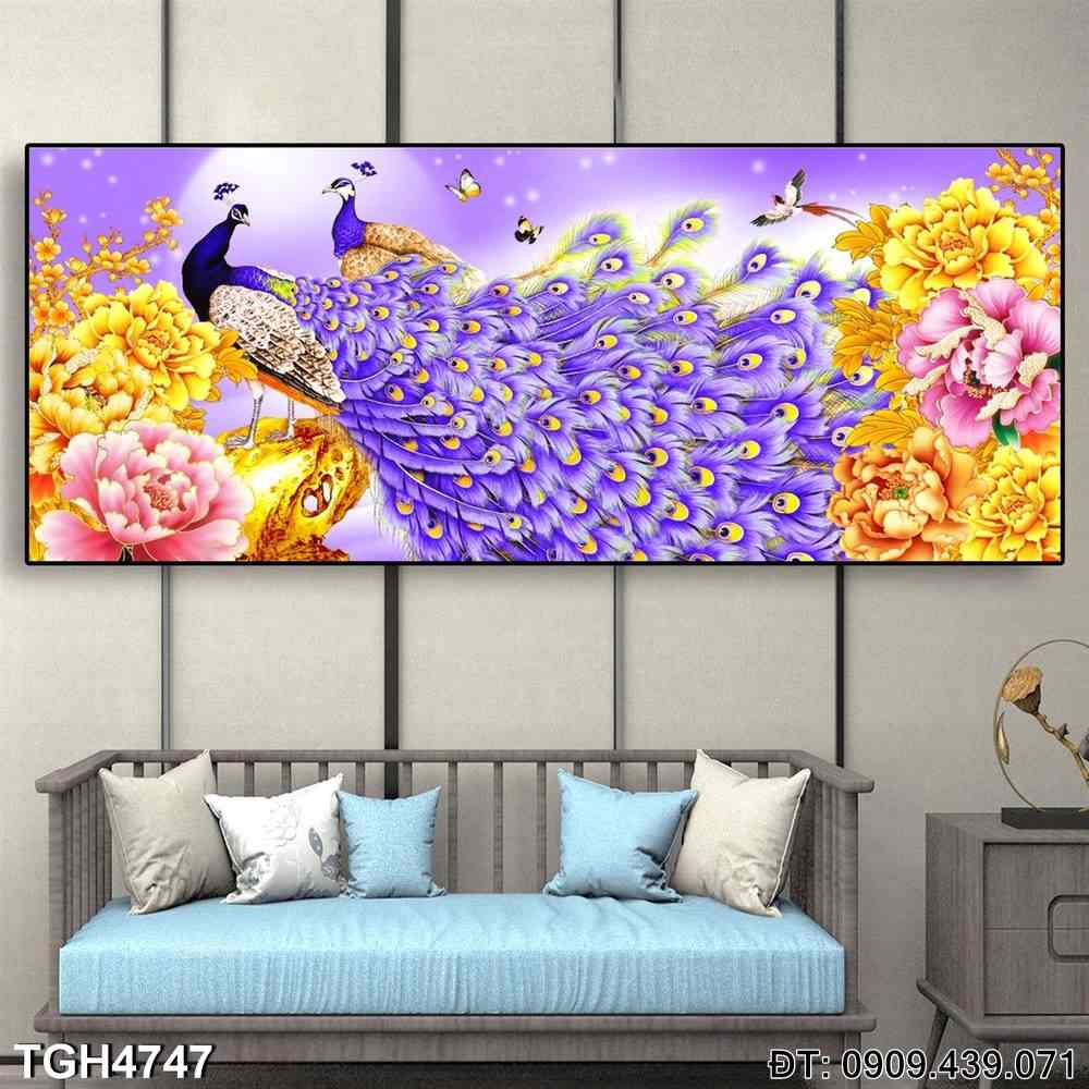 Chất lượng in ấn cao cấp giúp tái hiện rõ nét từng chi tiết, từ bộ lông công đến những bông hoa Kim Tiền đầy ý nghĩa phong thủy. Đây là lựa chọn hoàn hảo để làm mới không gian sống, tạo điểm nhấn nghệ thuật tinh tế.