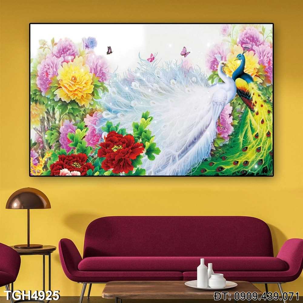 Chất lượng in ấn cao cấp làm nổi bật từng chi tiết, từ bộ lông của chim công cho đến cảnh vật xung quanh, tạo nên cảm giác chân thực như bạn đang sống giữa thiên nhiên. Đây là lựa chọn tuyệt vời để làm mới không gian sống, thêm vào đó là sự sang trọng và nghệ thuật.