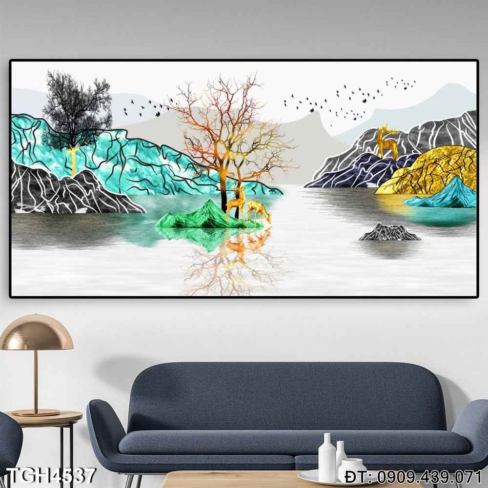 Chất lượng in ấn cao cấp giúp bức tranh thể hiện rõ nét từng chi tiết, từ những đường nét của hươu cho đến vẻ đẹp của cảnh vật xung quanh. Đây là một lựa chọn lý tưởng để làm mới không gian sống của bạn, thêm phần sang trọng và tinh tế.