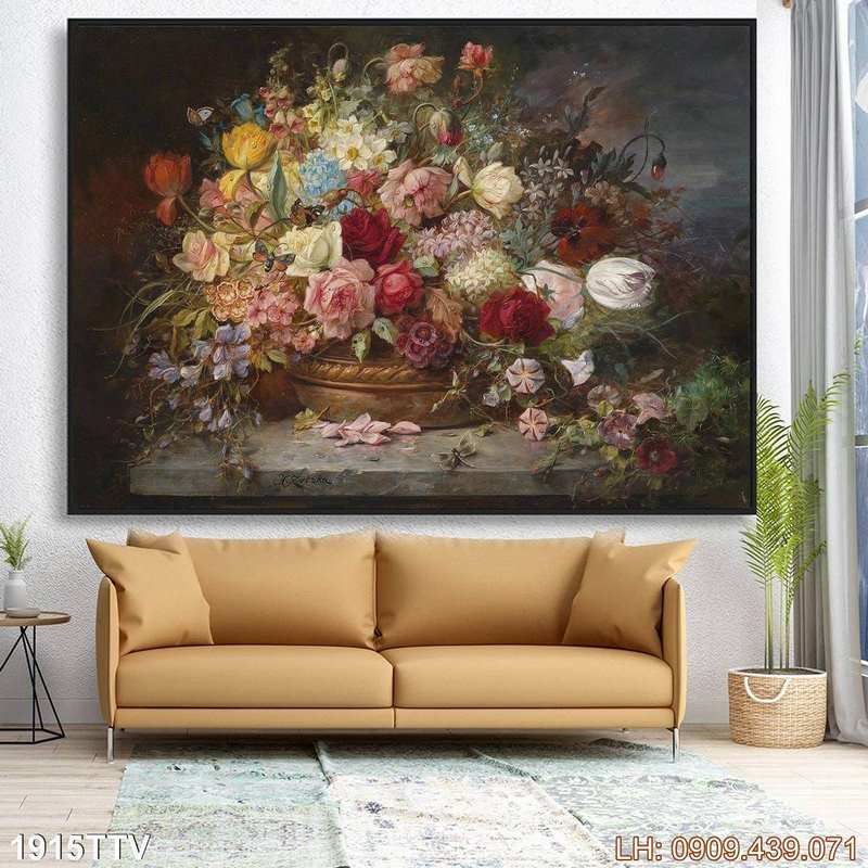 Tranh tĩnh vật bình hoa dán kính – 1915TTV là một sản phẩm được yêu thích thuộc chủ đề Tranh sơn dầu tĩnh vật hoa quả và thuộc nhóm Tranh decor khổ lớn. Theo đó, bức tranh không chỉ mô tả hình ảnh tranh phong cách sơn dầu, tĩnh vật hoa quả mà còn mang đến nhiều cung bậc về chiều sâu của nó. Sự hòa quyện giữa ý tưởng chi tiết lẫn tổng quan tạo nên vẻ đẹp đặc trưng cho bức tranh, rất phù hợp nếu bạn đang tìm mẫu decor về chủ đề tĩnh vật bình hoa.
