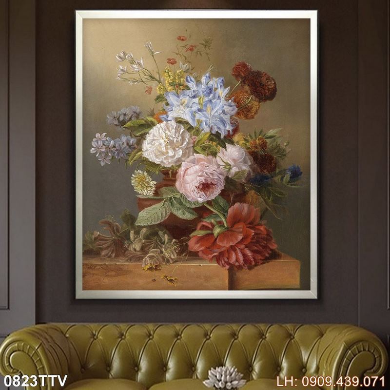 Tranh tĩnh vật dán kiếng – 823TTV là một tác phẩm nổi bật thuộc chủ đề Tranh sơn dầu tĩnh vật hoa quả và thuộc nhóm Tranh phòng khách theo yêu cầu. Nhìn vào tranh, tác phẩm không chỉ mô tả hình ảnh tranh phong cách sơn dầu, tĩnh vật hoa quả mà còn gợi đến các cung bậc về chiều sâu của nó. Sự hòa quyện giữa hình ảnh độc đáo lẫn tổng quan tạo nên vẻ đẹp đặc trưng cho bức tranh, rất phù hợp nếu bạn đang tìm mẫu treo tường về chủ đề tĩnh vật.