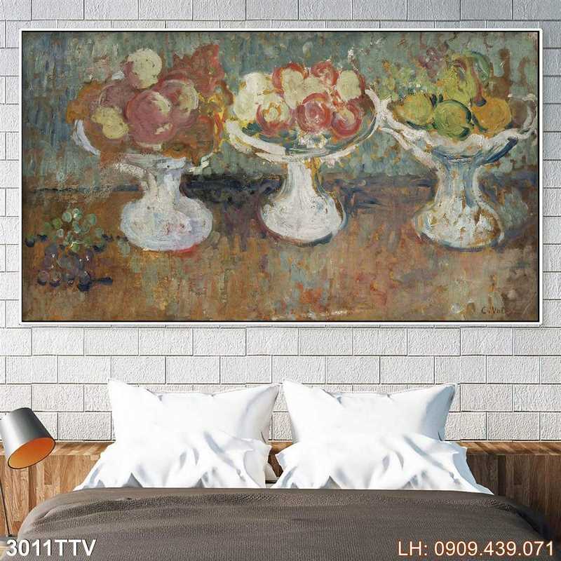 Tranh tĩnh vật tại TpHCM – 3011TTV là một sản phẩm tiêu biểu thuộc chủ đề Tranh sơn dầu tĩnh vật hoa quả và thuộc nhóm Tranh phòng ngủ hiện đại. Theo đó, bức tranh không chỉ thể hiện hình ảnh tranh phong cách sơn dầu, tĩnh vật hoa quả mà còn gợi đến nhiều cung bậc về ý nghĩa của nó. Sự kết hợp giữa màu sắc độc đáo lẫn tổng quan tạo nên vẻ đẹp đặc trưng cho bức tranh, rất phù hợp nếu bạn đang tìm mẫu decor về chủ đề tĩnh vật.