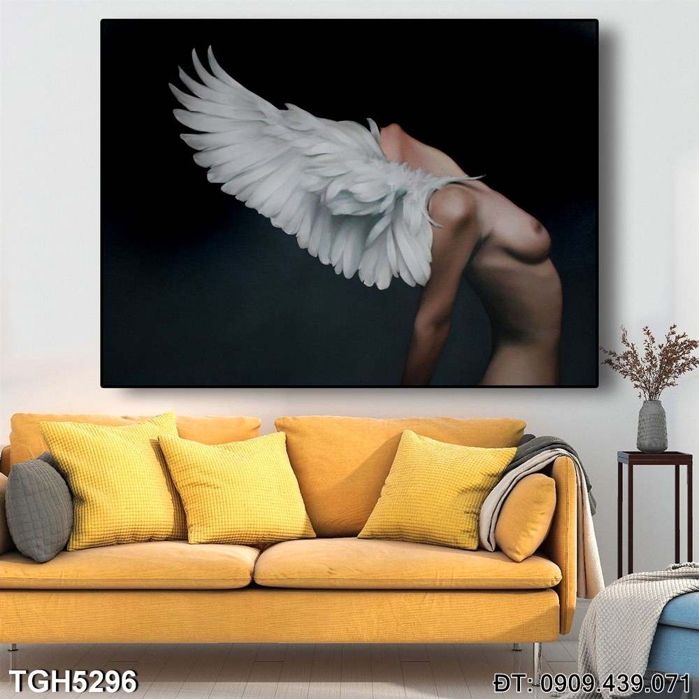Tranh Trang Trí Cô Gái Gợi Cảm Và Đôi Cánh Trắng TGH5296 mang đến hình ảnh quyến rũ của người phụ nữ bên đôi cánh trắng, biểu trưng cho sự tự do và mơ mộng. Bức tranh này không chỉ tạo điểm nhấn nghệ thuật cho không gian phòng ngủ mà còn gợi lên cảm xúc về tình yêu và sự lãng mạn.