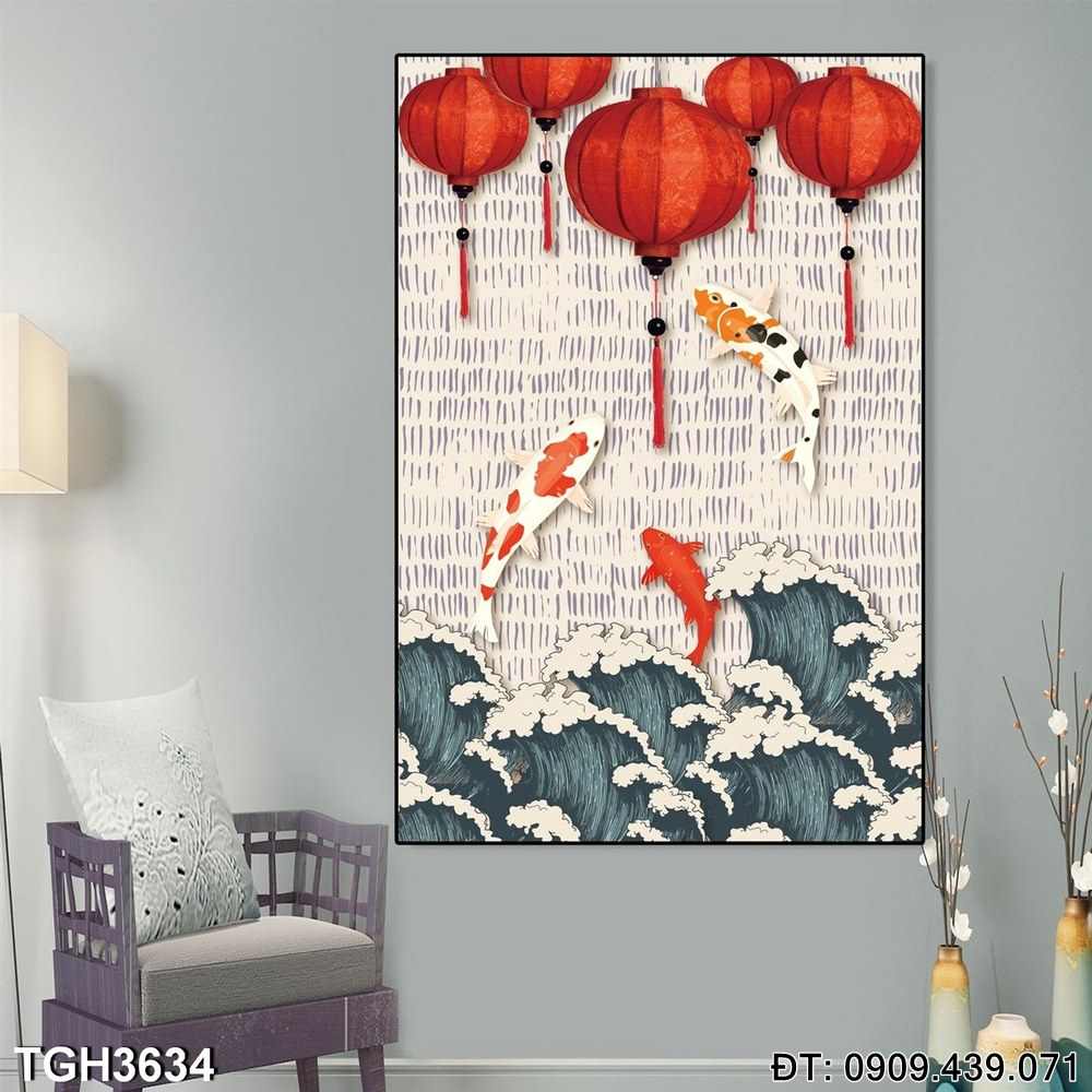 Tranh trang trí đàn cá Koi nhảy trên mặt nước – Mã:TGH3634