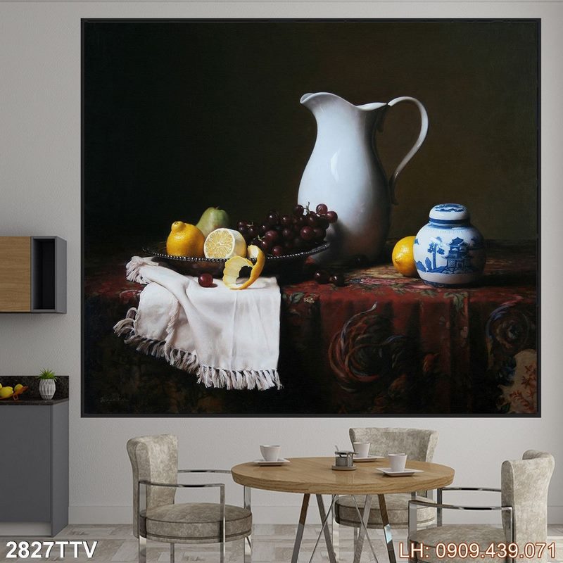 Tranh vẽ sơn dầu in tráng gương – 2827TTV là một sản phẩm tiêu biểu thuộc chủ đề Tranh sơn dầu tĩnh vật hoa quả và thuộc nhóm Tranh phòng ngủ in nhanh. Theo đó, bức tranh không chỉ thể hiện hình ảnh tranh phong cách sơn dầu, tĩnh vật hoa quả mà còn gợi đến nhiều cảm xúc về chiều sâu của nó. Sự kết hợp giữa hình ảnh độc đáo lẫn tổng quan tạo nên vẻ đẹp đặc trưng cho bức tranh, rất phù hợp nếu bạn đang tìm mẫu treo tường về chủ đề sơn dầu.